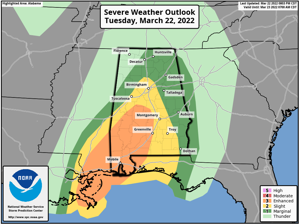 Alabama Severe Weather Map NWS Birmingham, Alabama: The Christmas Day forecast for Alabama still looks like a wet one. Thatโs according to the National Weather Service. Itโs not all bad news: The rain is still needed with the s . On this first day of the New Year, we have some clouds in place early this morning across Alabama, but the sky becomes partly to mostly sunny to .